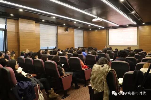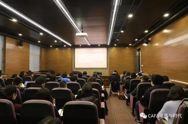 范迪安院长鼓励大家说,中央美院的前辈曾经创造过许多优秀的作品,探索出符合历史特征的艺术表现形式,这激励着我们不断思索如何才能完成代表当下时代风貌的艺术作品。范院长以图文并茂的形式,带领大家回顾了中华民族灿烂的视觉文化历史发展,列举了运用古代传统文化元素设计的成功案例,并指出一些亟待解决的问题,指明未来设计和创作的方向,为同学们极大地拓展了专业思考的空间。
